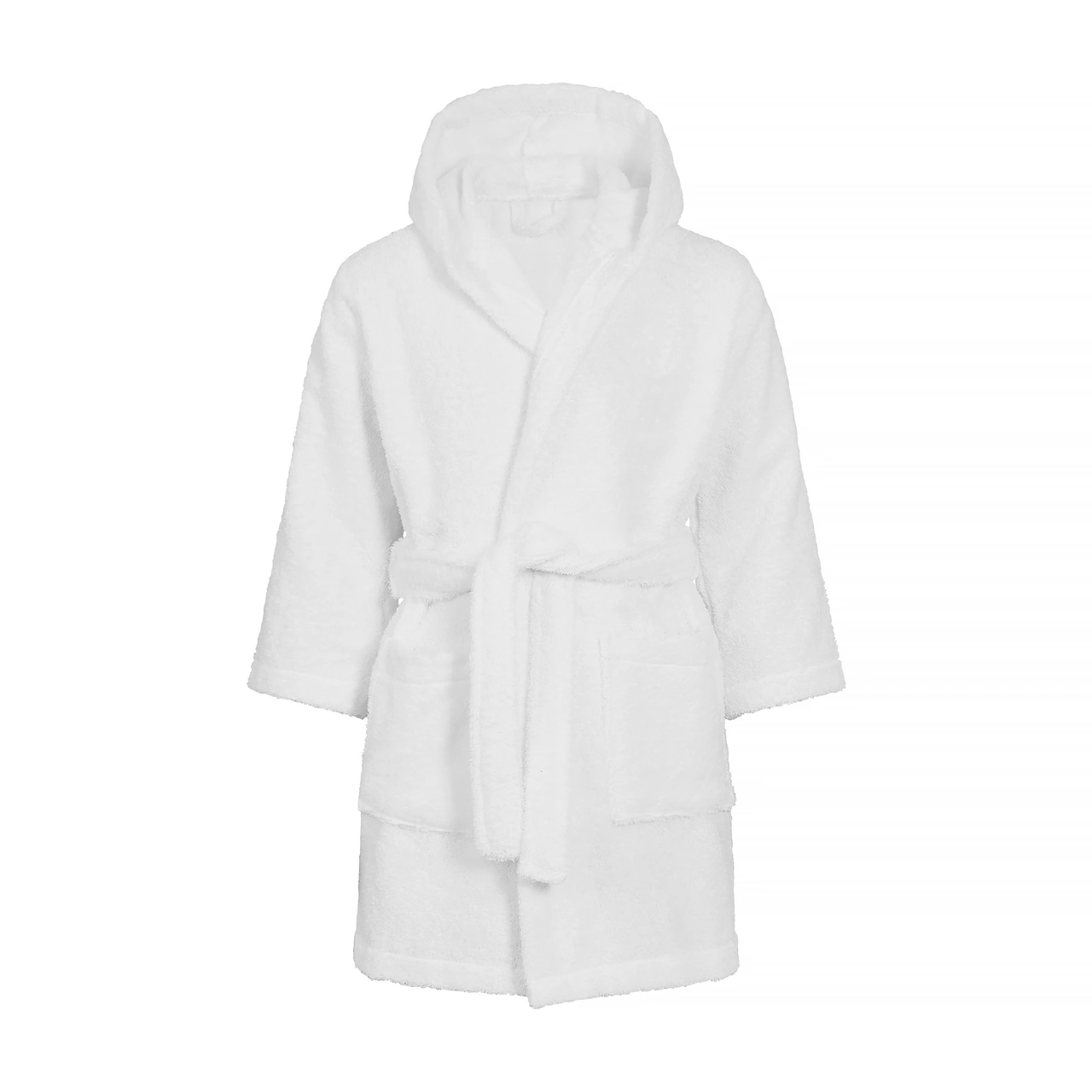 Bathrobe for kids in a wonderfully soft, plain, cotton terry. Cozy model with hood, two pockets and tie belt. Suitable for children in the age between 4 - 6 year.