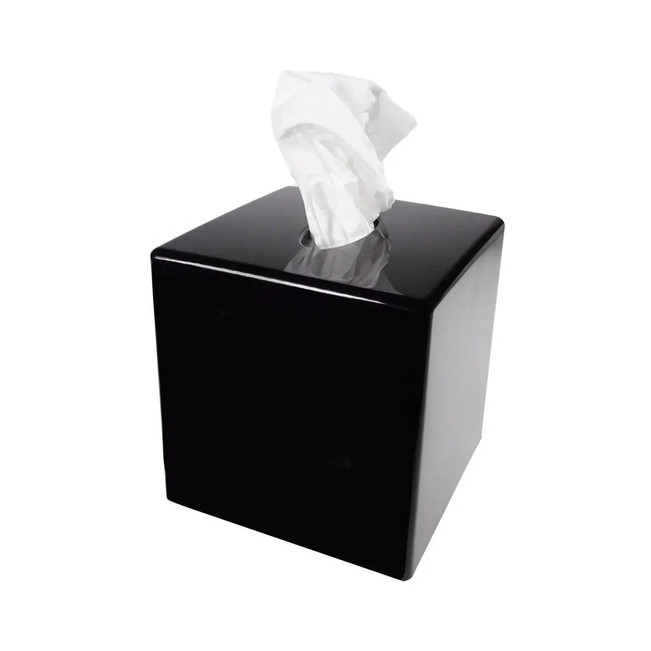 Tissues dispenser for facial tissues. Cube in black plastic
